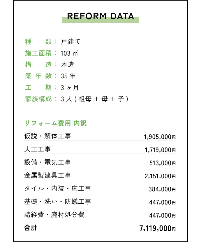 お母様と同居されることになり、老朽化も気になっていたのでリフォームすることに。お気に入りの雑貨が似合う可愛いお家をご希望されました。