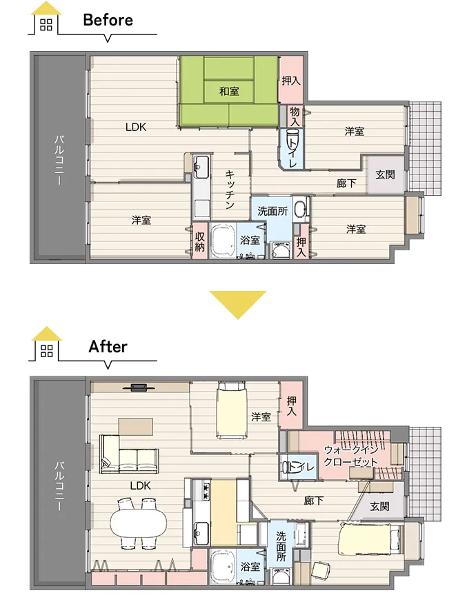 ご夫婦二人暮らしになったので、使わなくなった部屋を有効活用し、定年後も過ごしやすい空間にしたいとのことでした。