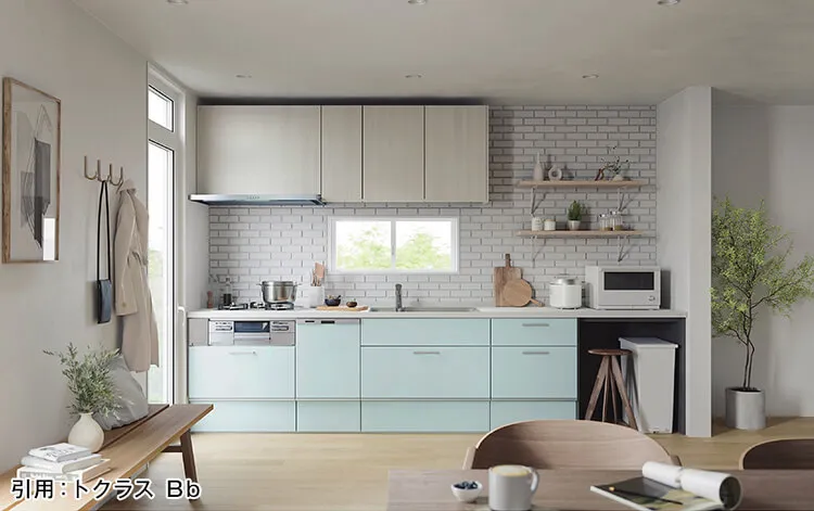トクラスの「Bb」は、リーズナブルな価格帯でありながら人造大理石カウンターを採用している点が特徴的です。人造大理石は汚れや傷がつきにくく、メンテナンスがしやすい素材のため、きれいな状態を保ちやすいと言えます。