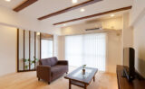 間仕切りや建具を少なくし、空間を最大限に活かした開放感のあるLDK。元々お持ちだったお気に入りの家具も映える素敵な空間になりました。