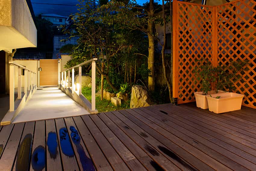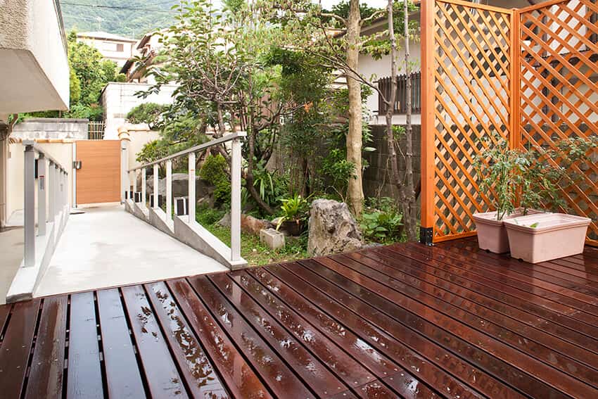 家族をつなげる、スロープ付きバリアフリーウッドデッキ